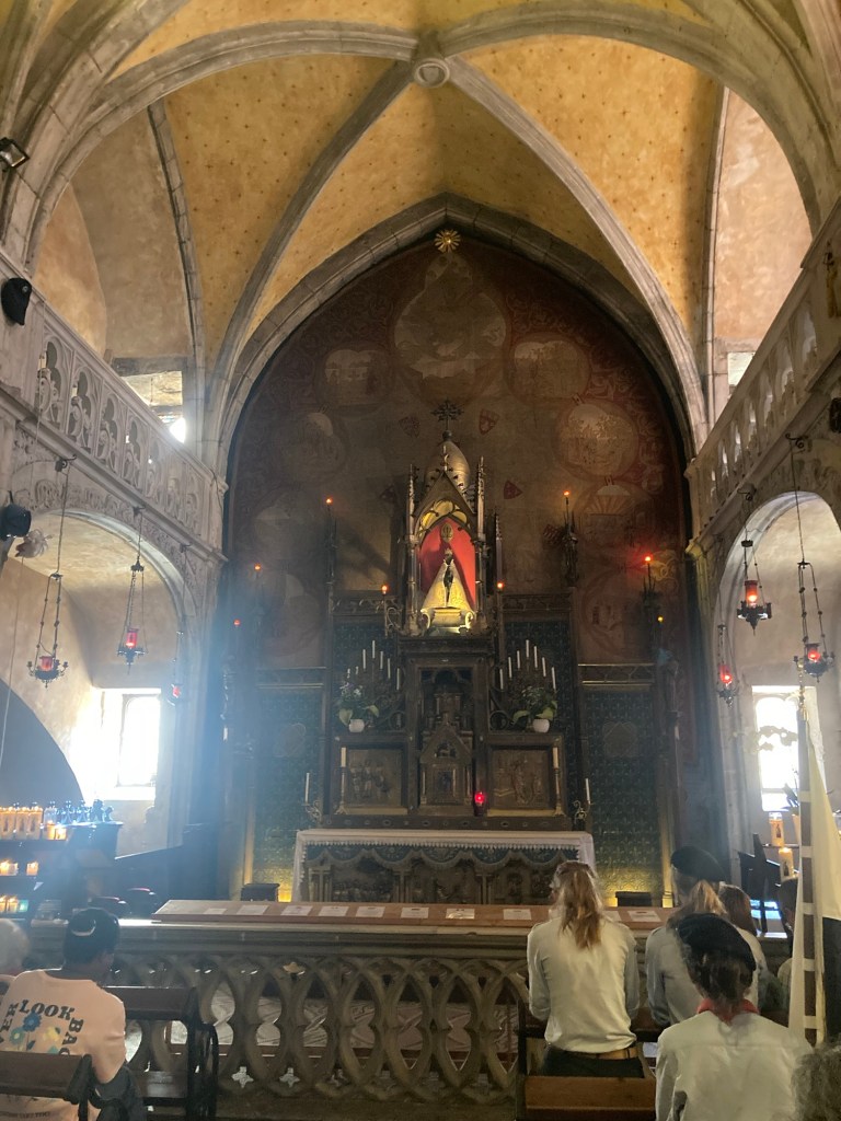 Très belle soirée et bon début de journée ce matin à Rocamadour. J’ai pu beaucoup prier, me confesser, assister à la messe mais aussi acheter quelques souvenirs et cadeaux. On a terminé par un tour à la crêperie avec Thomas et Florence avant de prendre une glace (si vous avez un peu d’audace, goûtez celle au chèvre Cabecou chez le glacier juste avant l’entrée du sanctuaire : vous m’en direz des nouvelles…). Bref, tout cela fut un parfait équilibre de réjouissances célestes et terrestres, pour terminer en beauté une semaine dont je me souviendrai longtemps.
